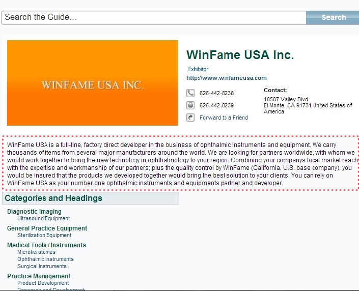 2. หมายเลข 2 ในกรอบสีน้ำเงิน --- “Distributor” แปลว่า “ผู้จัดจำหน่าย” WINFAME USA INC. บลาๆๆๆ CA, USA. อ่าว แล้วทำไมไปจัดจำหน่ายที่อเมริกาโดยบริษัทวินเฟรมแทนล่ะ ทำไมไม่จัดจำหน่ายในไทย ก็เค้าบอกเค้าเป็นผู้นำเข้า ความจริงช่องนี้น่าจะเป็นบริษัทในไทยที่นำเข้ามากกว่านะ เริ่มงงๆตงิดไหมล่ะ ตามความคิด…นี่เป็นเอกสารสำคัญมาก ทางอเมริกาไม่น่าจะออกเอกสารมาผิดได้ ลองไปหาข้อมูลเกี่ยวกับบริษัทวินเฟรมดูสิ…พรึ่บ!!!