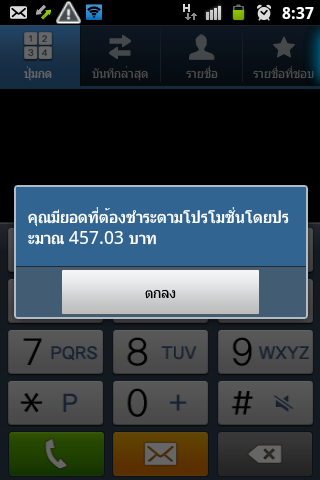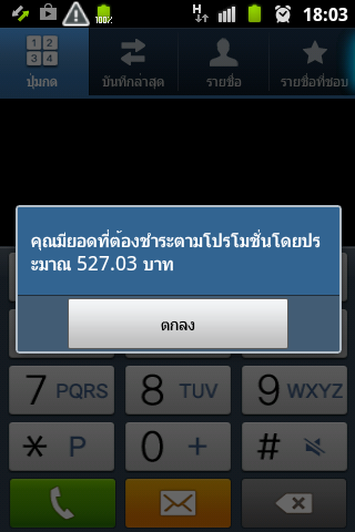 3. วันถัดมายอดเงินขึ้นไป 527 - 458 = 69 บาท ช่วงเวลาดังกล่าวมีการโทรออกครั้งเดียวเป็นเวลา 6 นาที 7 วินาที