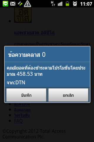 จนครบรอบบิลราววันที่ 20 กันยายน ค่าบริการมีบวก SMS เข้ามา 300 บาท เช็คดูก็มีแต่ SMS สองตัวที่ว่ามา หลังจากนั้นก็มี SMS เข้ามาทุกวันจำนวนเท่าเดิมเลยไปแจ้งยกเลิกกับ FB Dtac ทาง pantip ในวันที่ 29 กันยายน หลังจากยกเลิกแล้ว SMS ก็ยังระดมเข้ามาเหมือนเดิม อีก 2 วันจึงไปที่ Dtac Shop ในห้าง Big C ให้ทำการยกเลิกให้ แต่ SMS ขยะก็ยังระดมเข้ามาเหมือนเดิม ตอนค่ำสามทุ่มเลยโทร 1678 ไปยกเลิก SMS ผีทุกฉบับกับทาง Call Center ซึ่ีงทางนั้นก็บอกจัดการให้เรียบร้อยแล้วแต่ SMS ขยะก็ยังเข้ามาเหมือนเดิม
