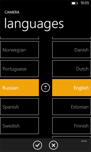 จากนั้นผมก็กดไปที่ camera แล้วเล็ง กล้อง เข้าไปที่ภาษาต่างด้าวที่ต้องการแปล ในที่นี้คือ รัสเซีย ถือค้างอยู่สักพัก ตัวหนังสือค่อยๆ ปรากฏทีละคำสองคำ แล้วเปลี่ยนเป็นภาษา อังกฤษ ที่ผมต้องการ
