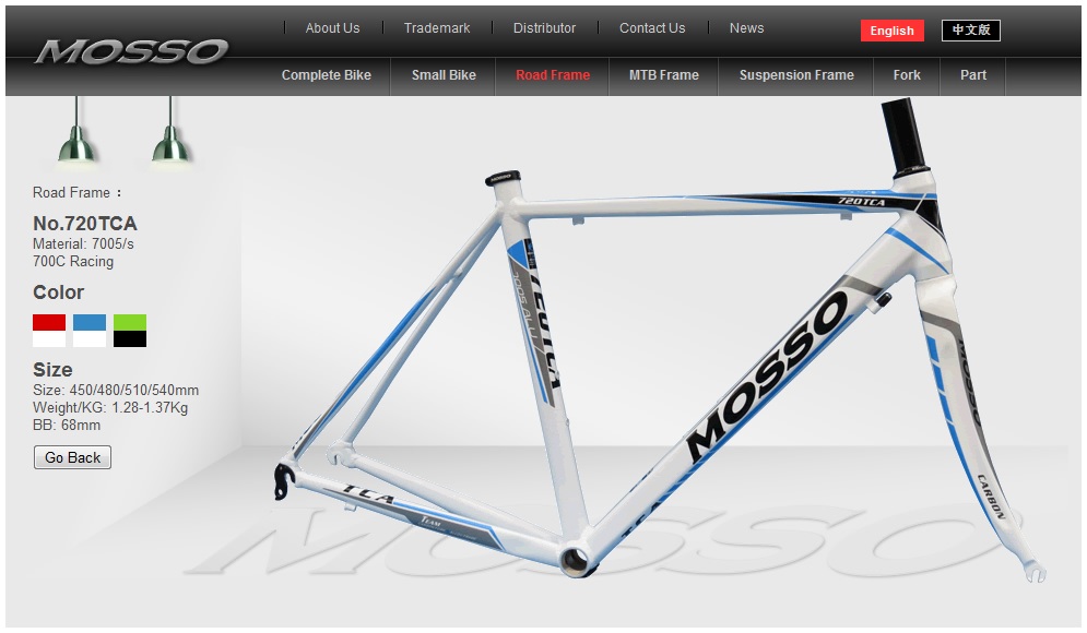 ผมเห็นเฟรม MOSSO สีฟ้า-ขาวตัวนี้ แล้วปิ๊งเลย ตะเกียบคาร์บอน มีไซร์ 54 ซะด้วย