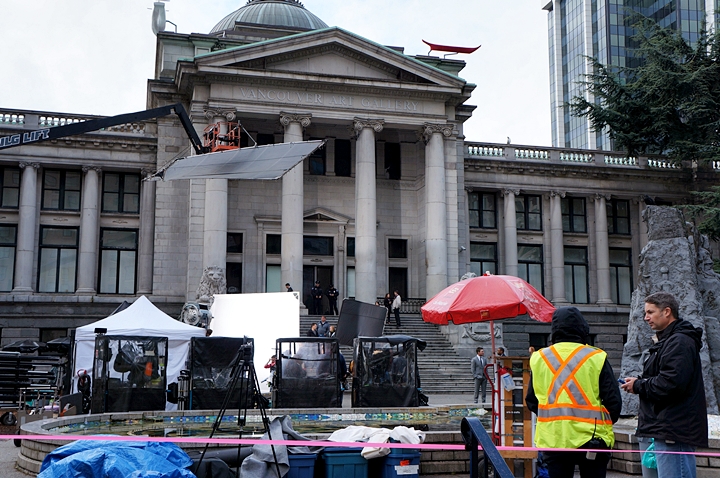 ขณะที่เดินจากโรงแรม กำลังจะไปขึ้นรถ shuttle bus ก็เห็นกองถ่ายอยู่หน้า Vancouver Art Gallery