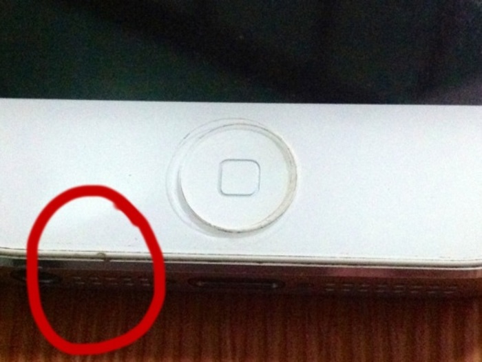 5. iPhone 5 ของผมเครื่องนี้ มีรอยอยู่ในบริเวณขอบล่างสุดทางฝั่งซ้ายของตัวเครื่อง เป็นรอยที่มีความยาวประมาณไม่ถึง 1 มิลลิเมตร ซึ่งเป็นรอยที่ผมพบเจอตั้งแต่วันรับเครื่อง ซึ่งในวันมี่รับเครื่อง ตรวจสอบเครื่องก็พบรอยดังกล่าวแล้ว แต่ผมไม่ได้ติดใจอะไรกับรอยดังกล่าว เพราะในวันนั้นไปรับเครื่องช่วงค่ำ จึงมีเหลือเครื่องนี้เครื่องเดียวสำหรับขนาดและสีที่ต้องการ และผมได้พิจารณาแล้วก็เห็นว่าเป็นตำหนิเพียงเล็กน้อย ไม่มีผลอะไรกับการใช้งานเครื่อง จึงได้รับเครื่องมาในวันนั้น