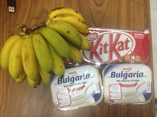 2.เทโยเกิร์ตสองถ้วย + คิดแคทสี่ชิ้น + กล้วยไข่สามลูก