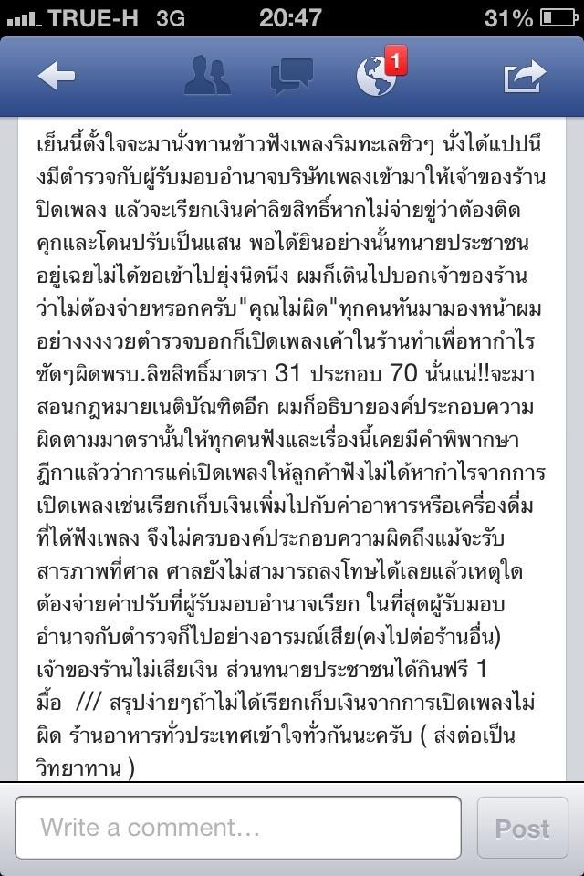 วันนี้ได้รับแท็กภาพนี้มาจากเพื่อนในเฟสน่ะครับ อ่านแล้วเชื่อครึ่งไม่เชื่อครึ่ง เลยเอามาถามผู้รู้ในนี้ดูครับ ว่าเปิดเพลงในร้านไม่ผิดจริงเหรอตรับ