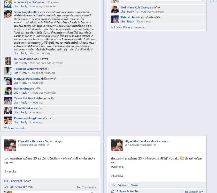คิดกันยังไงบ้างครับแบบนี้มันเป็นเรื่องปกติไหมแฟนคลับนักกีฬาคนอื่นก็ทำแบบนี้ไหม ผมก็อยากได้ของฮารุกะเหมือนกันนะแต่ก็รู้สึกแปลกๆเหมือนกับตั้งเพจมาเพราะกะจะขายของฮารุกะในตอนท้าย แต่อีกใจก็คิดว่าถ้าไม่มีคนทำแล้วเราจะไปหาพวกเสื้อ เข็มกลัด ของฮารุกะได้ที่ไหน 2 จิตสองใจอะครับ เคยได้อ่านคห.นึ่งเขาเคยบอกว่าเพจพวกแฟนคลับพวกนี้สุดท้ายแล้วก็จะขายของกันตอนนั้นผมก็คิดว่าไม่จริง แต่พอมาเจอกับตัวเองมันกลายเป็นอย่างที่เขาบอกไปซะงั้น แต่การขายของฮารุกะมันก็ดีเพราะคนที่ชอบจริงๆจะได้มีของที่ระลึกพวกเสื้อ โปสเตอร์ เข็มกลัดอะไรพวกเนี้ยะ แฟนๆฮารุกะหรือแฟนคลับนักกีฬาคนอื่นที่เคยเจอเหตุการณ์แบบนี้หรือไม่เคยเจอก็แชร์กันได้ ขอบคุณครับ