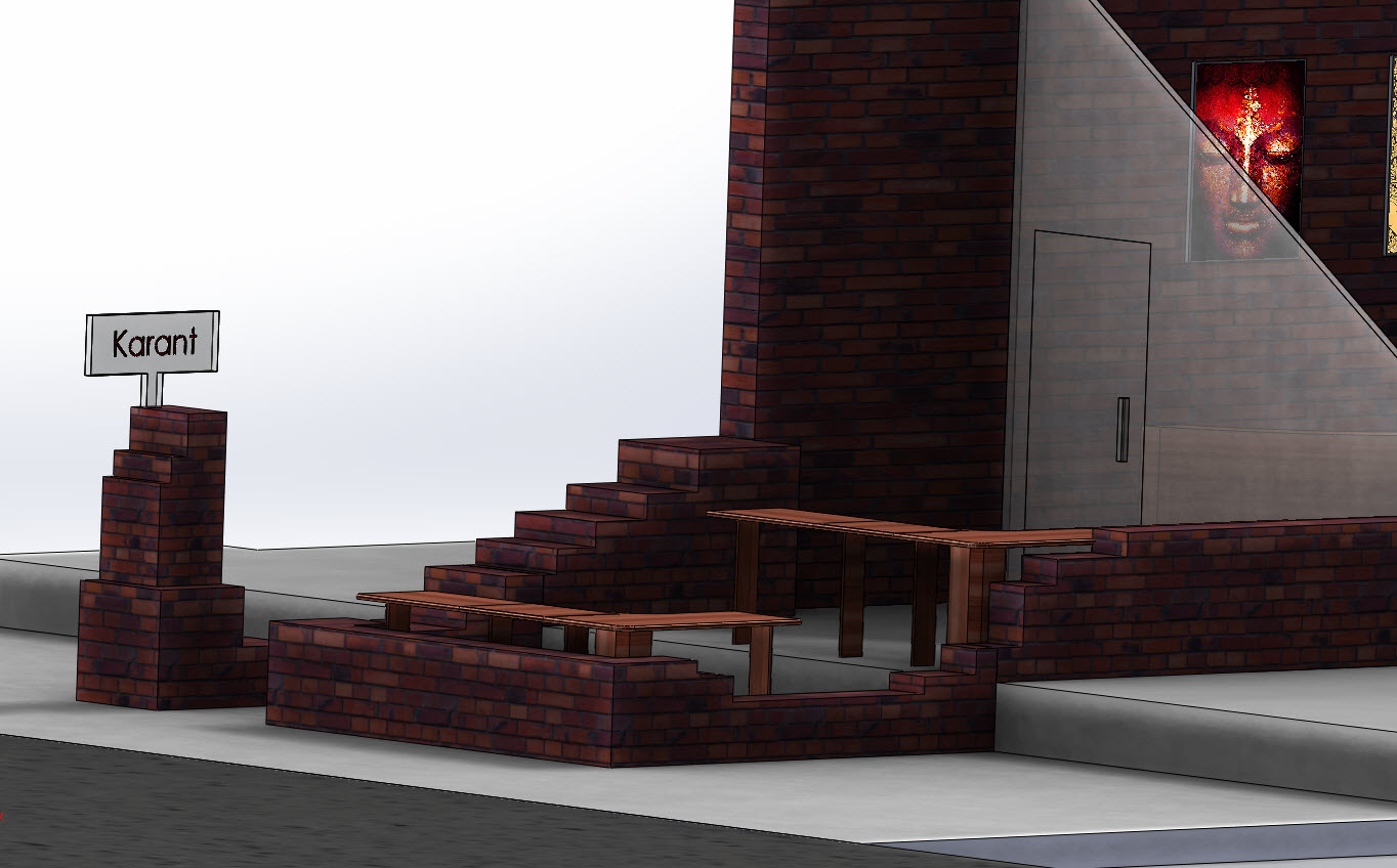 - ใช้ลายไม้และอิฐมอญโทนทึบเป็นโครงสร้างโชว์เอกลักษณ์