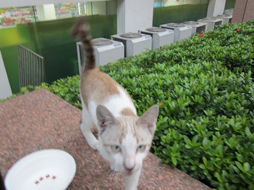 เราเห็นน้องครั้งแรกประมาณ 2 เดือนที่แล้ว ยังตัวเล็ก ๆ อยู่เลย คิดว่าน้องอาศัยอยู่ตรงบริเวณที่มีพุ่มหญ้าหน้าโลตัสค่ะ พออาทิตย์ที่แล้วเห็นอีกครั้งก็เลยรู้ว่าน้องยังอยู่แล้วก็โตขึ้น เราเห็นผู้หญิงต่างชาติเอาอาหารเม็ดไปให้ด้วยค่ะ ส่วนเราเคยเอาอาหารไปให้บ้าง