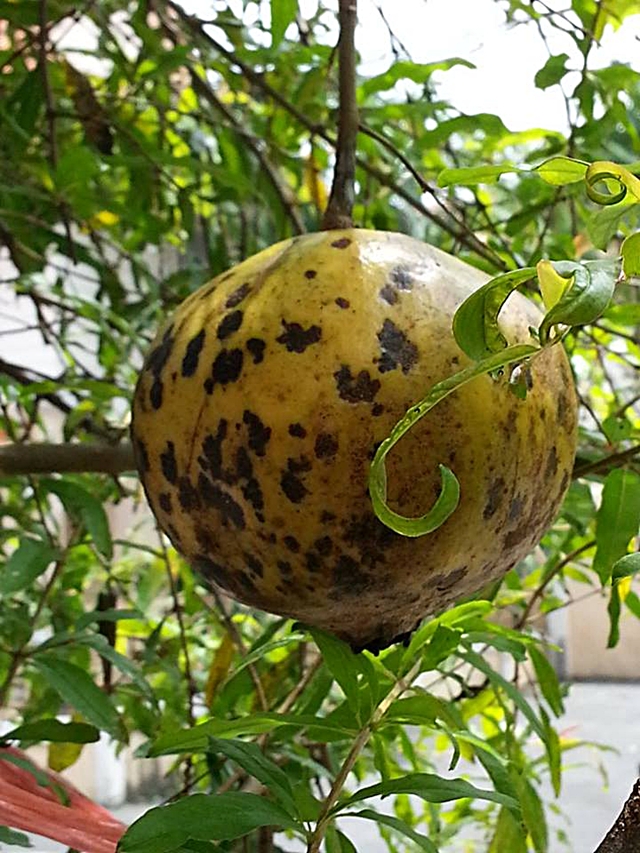ต้นทับทิม ทั้งใบ แล้วก็ลูก เป็นแบบในรูป รักษายังไงค่ะ