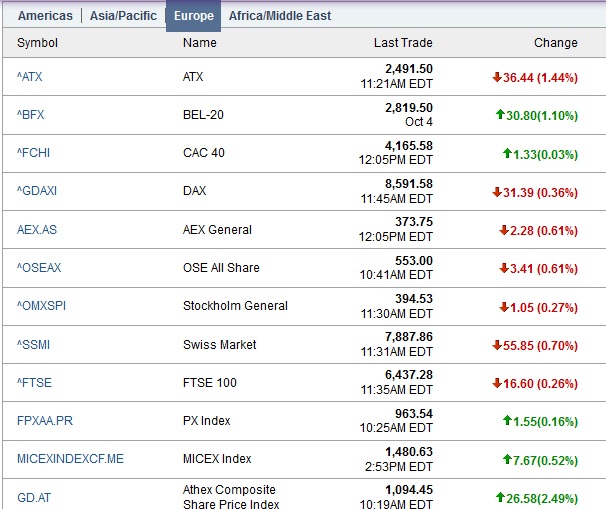 ตลาดหุ้นนิวยอร์กร่วงลงหลังจากนายจอห์น โบเนอร์ ประธานสภาผู้แทนราษฎรสังกัดพรรครีพับลีกันกล่าวว่า สภาผู้แทนราษฎรจะไม่ผ่านร่างงบประมาณชั่วคราวเพื่อยุติการปิดหน่วยงานรัฐบาลและจะไม่เพิ่มเพดานหนี้จนกว่าประธานาธิบดีบารัค โอบามา จะหันหน้ามาเจรจากัน