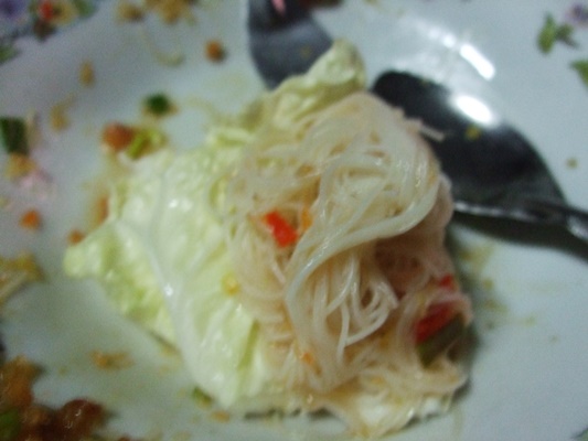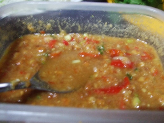 อันนี้ทำส่วนผสมของน้ำยำเหมือนน้ำทานกับเมี่ยงผมทำแบบสูตรของป่นอีสานผสมลงไปด้วยแต่ไม่มีน้ำปลาร้านะครับไม่เข้ากัน