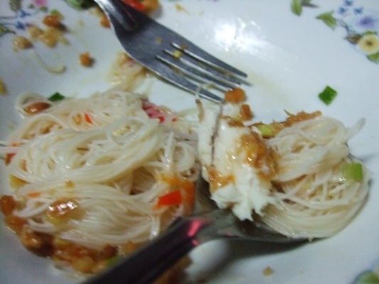 แล้วก็ลวกเส้นหมี่ทานประกอบด้วยครับ
