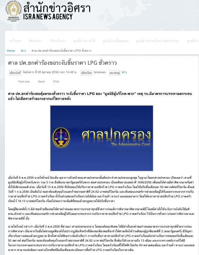 ขอแสดงความยินดีกับคนเสื้อแดงและนายทุนแก๊ส และของแสดงความเสียใจต่อประชาชนที่ศาลปกครองยกคำร้องขอระงับขึ้นราคา lpg ชั่วคราว