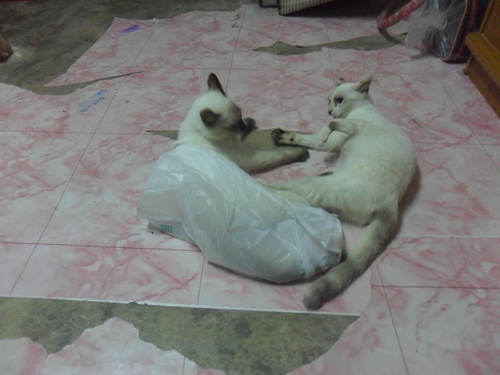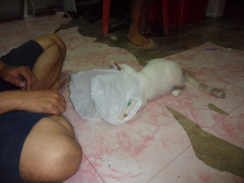 นิวสนุกกับถุงนัก โดยมียัยหนทนั่งรอเล่นอยู่