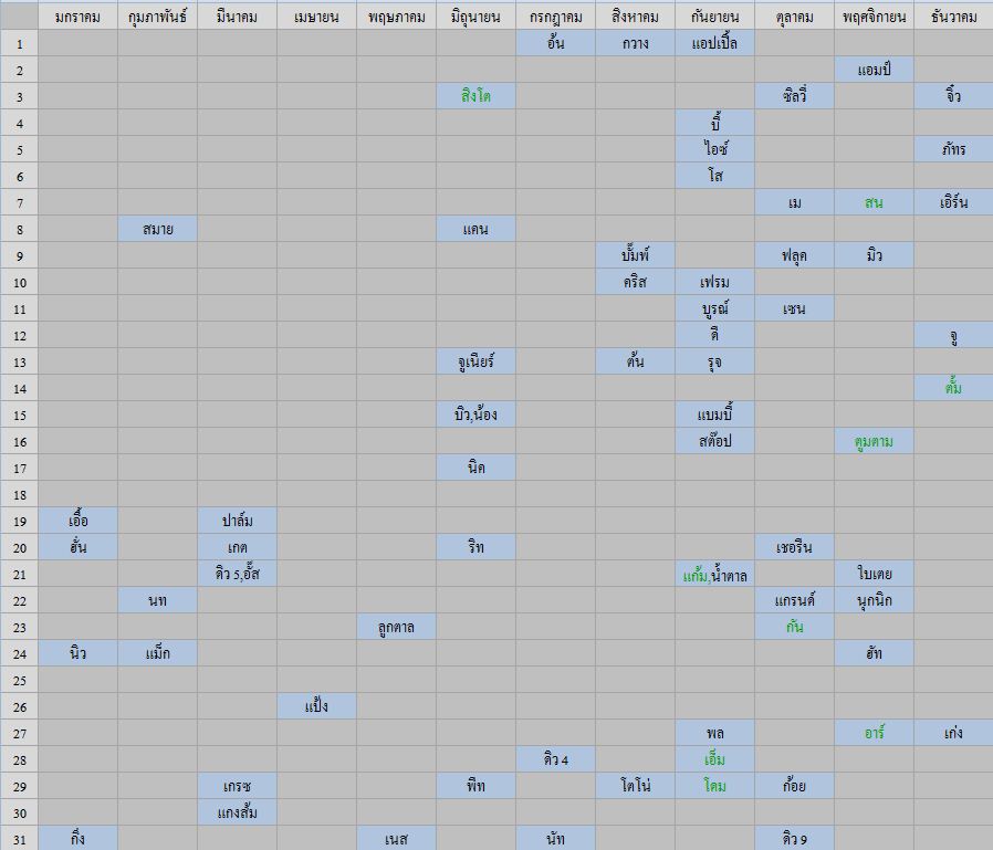 สวัสดีครับ วันนี้ผมจะมาจัดอันดับวันเดือนปีเกิดของเหล่าเดอะสตาร์ตั้งแต่ปี 1-9 กันครับก่อนเดอะสตาร์ 10 จะมา ซึ่งจากที่ผมหาข้อมูลมาได้ ผมมีวันเกิดของเดอะสตาร์ทั้งหมด 70 คนจาก 72 คนซึ่ง 2 คนที่หาไม่เจอจริงๆคือ แนท และ เบลล์ เดอะสตาร์ 1 ครับ ซึ่งมาดูกันดีกว่าว่า 70 อันดับใครเกิดก่อนเมื่อรวมกันแล้วใครอยู่อันดับที่เท่าไหร่กันมั่ง และล่างสุดแถมรูปวันเดือนที่เกิดโดยไม่นับปีในตารางด้วยครับ