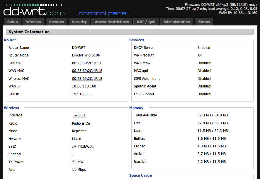 ผมได้ทำตามบทความจากเว็บไซต์ของ sys2u เรื่อง วิธีการขยายสัญญาณ True Wi-Fi โดยใช้ Linksys WRT54GL DD-WRT V.24