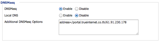 Repearter @true แล้วเข้าหน้า Login Password ไม่ได้ โดยในนั้นมีคนแนะนำให้หา IP ของ portal.trueinternet.co.th โดยใช้ nslookup แล้วนำไปตั้งค่า DNSmasq เป็น address=/portal.trueinternet.co.th/61.91.230.178