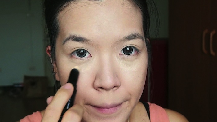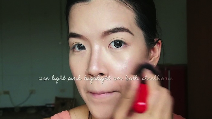 เน้นที่บริเวณโหนกแก้มและใต้ตา เพราะลุคนี้เราอยากให้ผิวดูสว่างโกลว์ค่ะ