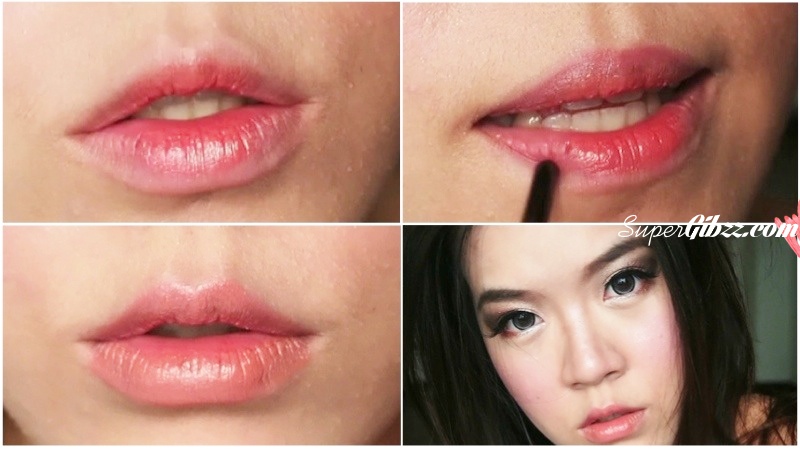 แต่ไม่ชัดจนโดดเด่น จากนั้นเอาลิปสติกสีนู้ดอมส้มน้ำตาล ทาที่ริมฝีปากด้านนอก