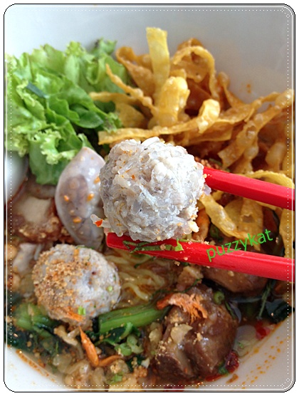 ชามนี้สั่งเอง แต่ก็ลมชื่อเรียกซะแล้ว เอาเป็นว่า บะหมี่เหลืองใส่ไส้หมู ซี่โครงหมู หมูกรอบแล้วก็ลูกชิ้นหมูเด้งวุ้นเส้นค่ะ