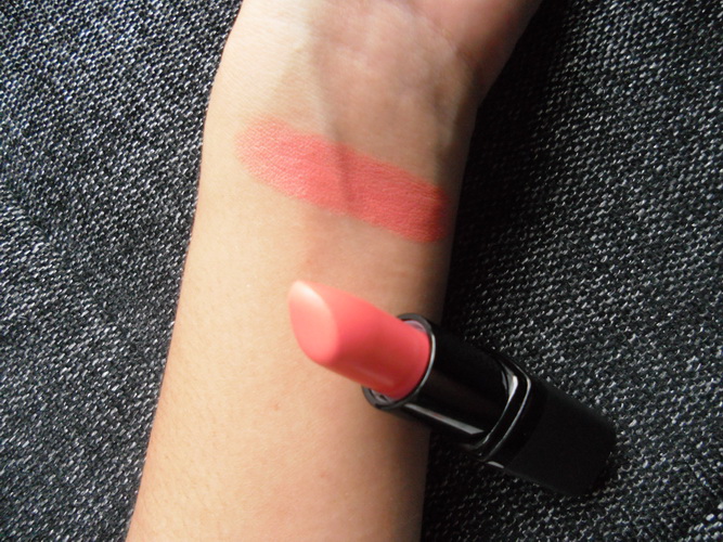 ลิปเป็นเนื้อแมท ค่อนข้างแห้งพอสมควร สีออกส้มสว่างๆค่ะ สีคล้ายกับ Revlon Smoke Peach เลย แต่ BarryM จะสว่างกว่านิดนึง แต่เนื้อลิปนี่แห้งเหมือนกันเลย ส่วนตัวคิดว่าสีนี้เหมาะกับคนผิวค่อนข้างขาวค่ะ อย่างเราผิวกลางๆทาออกมาแล้ว ปากนี่ลอยเชียว =_=