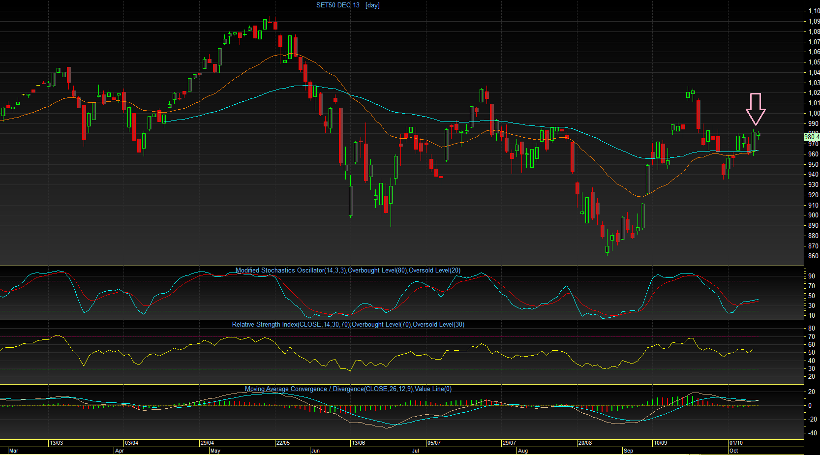 Technical Analysis : TF Day S50Z13 เมื่อวานนี้ตลาดค่อนข้างแกว่งตัวในกรอบแคบๆ 974-982 โดยประมาณ