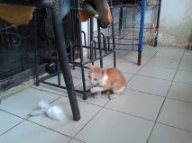 บอกว่าให้เราช่วยหาบ้านให้มันหน่อย สงสารมัน แม่มันโดนคนใจร้ายเอาเืชือกผูกคอไว้ (น่าสงสารมาก) ตอนนี้ได้ช่วยเหลือลูกแมวไว้แล้ว