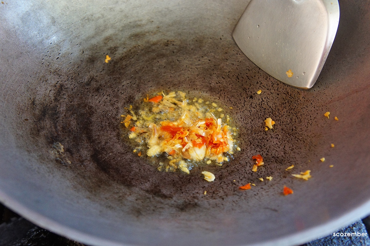 ตำพริก กระเทียม ผมชอบตำไว้แล้วล้างครกเลยครับ ง่ายดี ครกทิ้งไว้แห้งแล้วล้างยาก