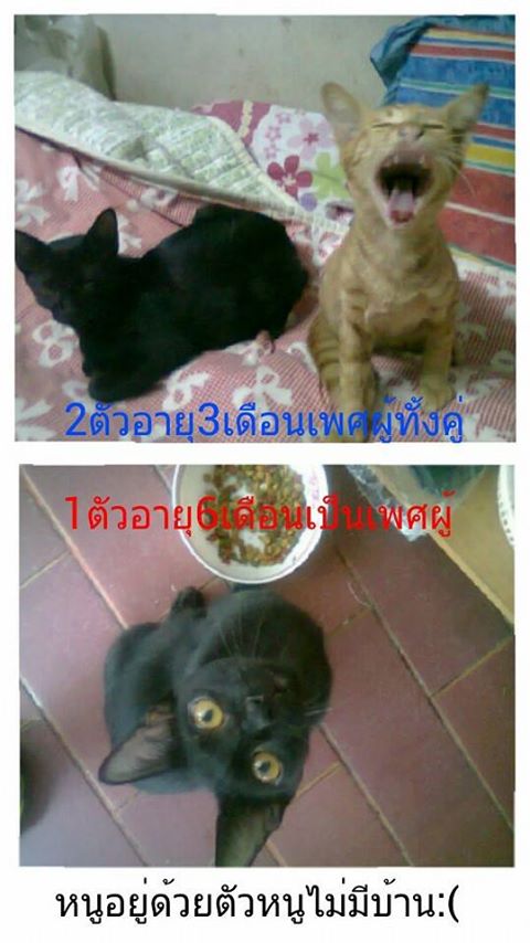 พี่เรียมไม่มีเงินมากพอที่จะเลี้ยงพวกหนูได้ เพราะพี่เรียมมีแมวโตอยู่แล้ว 10 ตัว เงินเดือน 6,000 บ. ไม่พอค่าใช้จ่ายทั้งหมดค่ะ
