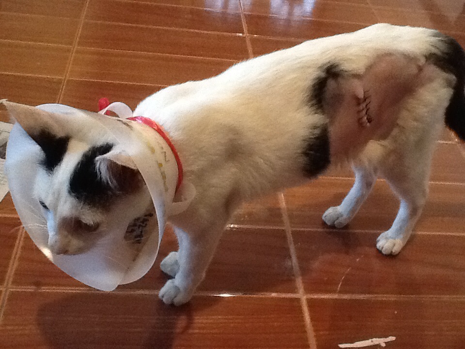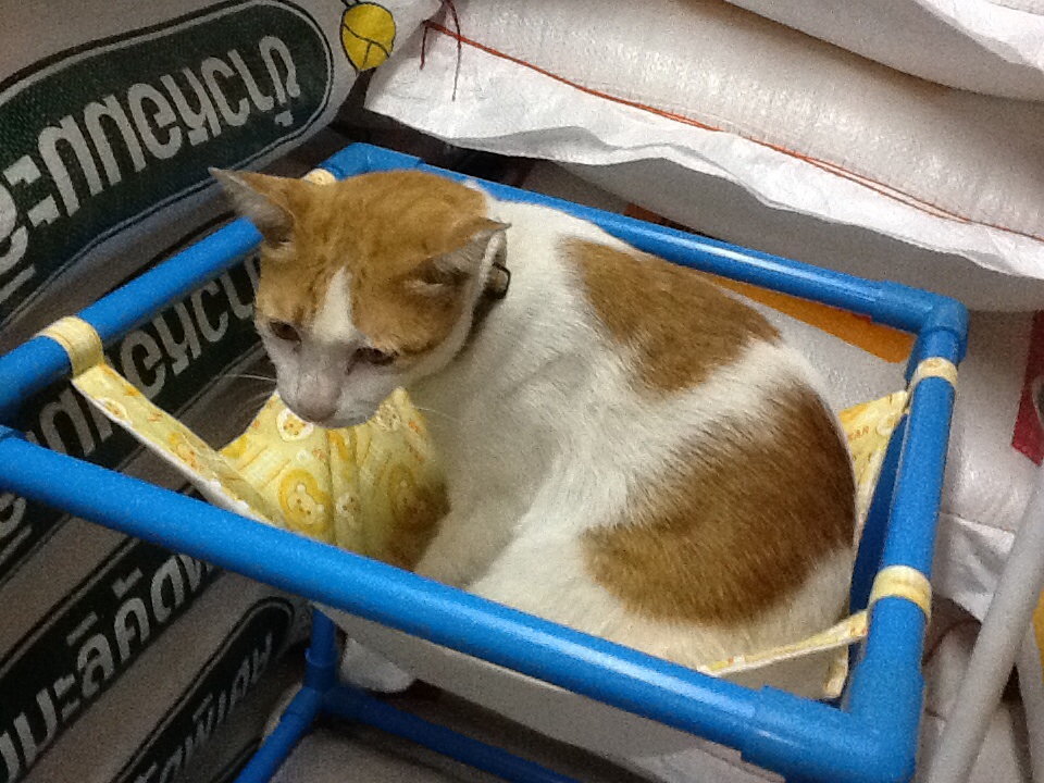 ยังไม่ทันไร งอกแบบไม่มีทางเลือกอีกหน่อ มีแมวจรสาว โตกว่าแป๊ะไช้หน่อย ทำหน้ามึน เข้ามาอยู่ในบ้านเฉยเลย แม่บอกไม่เลี้ยง สาวน้อยขี้เกียจ (ฟังรู้เรื่องแหะ) จนเขาลุกขึ้นมาปรับปรุงตัว ทำท่าหาหนู พอเห็นซากหนูตาย เราก็คิดว่าสงสัยแป๊ะไช้มั้ง บอกต่อหน้าเขาว่า ไม่น่าใช่น้องขาว ตอนกลางคืนหาเสร็จเอาขึ้นไปทิ้งไว้แถวห้องนอนชั้นบนเลย แบบว่าประกาศศักดา "นี่ของหนูหานะ" (แป๊ะไช้นอนในห้อง) กำลังลังเลใจว่าเอาไงดี ถ้ารับก็เป็น 3 แม่บ่นแน่นอน วันหนึ่งจู่ๆหง่าว เลยรีบตัดสินใจผ่าไปทำหมันและเลี้ยงไว้
