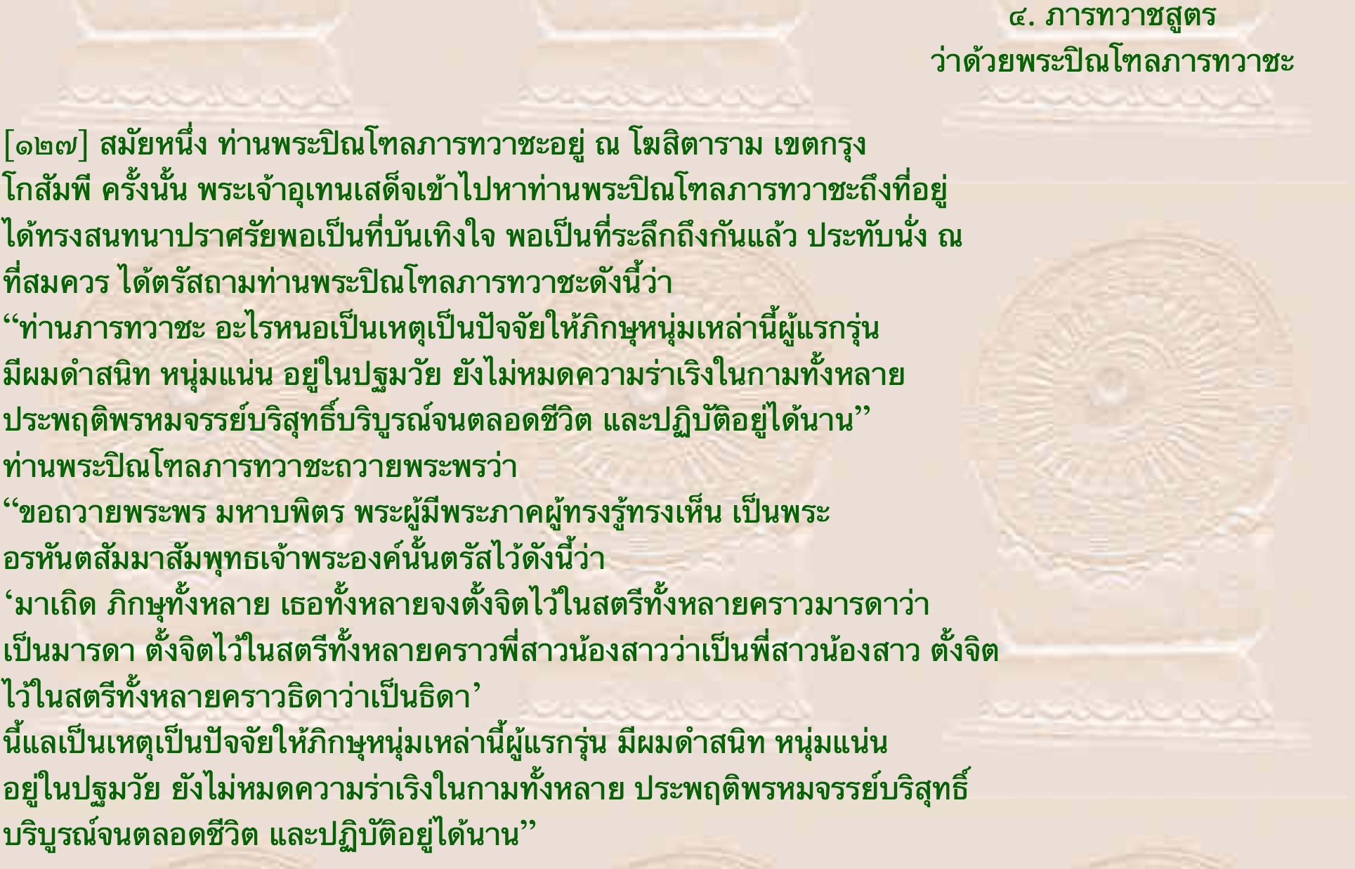 **ร่วมกันศึกษาและเรียนรู้พระไตรปิฏก** เหตุปัจจัยที่ทำให้ภิกษุดำรงพรหมจรรย์ได้ตลอดชีวิต : ภารทวาชสูตร