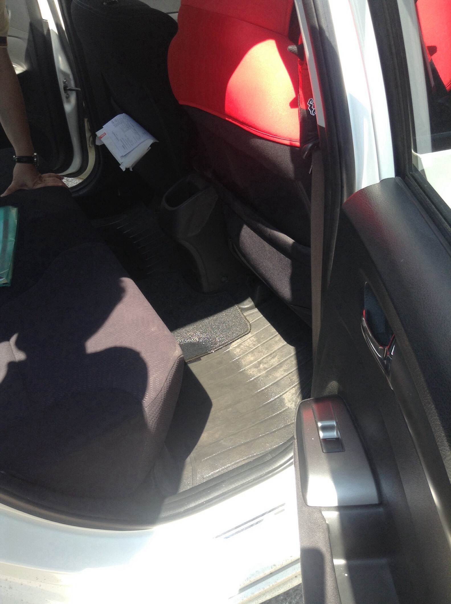 ใช่ครับ "น้ำท่วมห้องโดยสาร" ไม่ใช่แค่ซึมธรรมดา คือเมื่อหลายๆคืนมานี้ผมจอดรถในที่ค่อนข้างกลางแจ้ง บวกกับฝนที่ตกหนัก แต่ผมก็ไม่ได้เอ๊ะใจอะไรเลยจนมาเจอแอ่งน้ำในรถ สันนิษฐานว่าน่าจะเป็นโซนขวาหลังที่ไปทำมา เพราะเปลี่ยนประตูและแก้มขวาหลังด้วย จะว่าผมลืมปิดกระจกหรือลืมล็อครถรึป่าว บอกได้เลยว่าผมเป็นคนรอบคอบกับการจอดรถมาก ล็อคแล้วดึงประตูว่าแน่นไหม หลายครั้งก่อนจะจากกัน ผมเลยอยากจะถามพี่น้องพันธ์ทิพย์ว่า