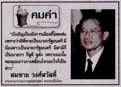 ทักษิณ ชินวัตร -->สมชาย วงศ์สวัสดิ์ (น้องเขย)--> ยิ่งลักษณ์ ชินวัตร (น้องสาว)