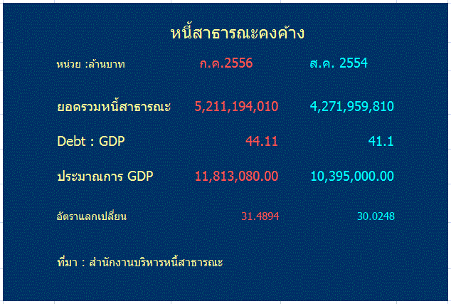 >> ได้แบกหนี้สาธารณะเพิ่มขึ้น เฉลี่ยๆกันไป..ทุกคนในประเทศ