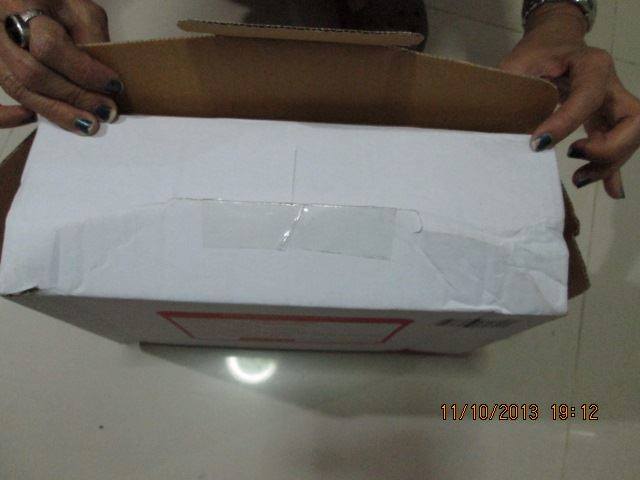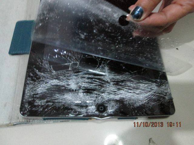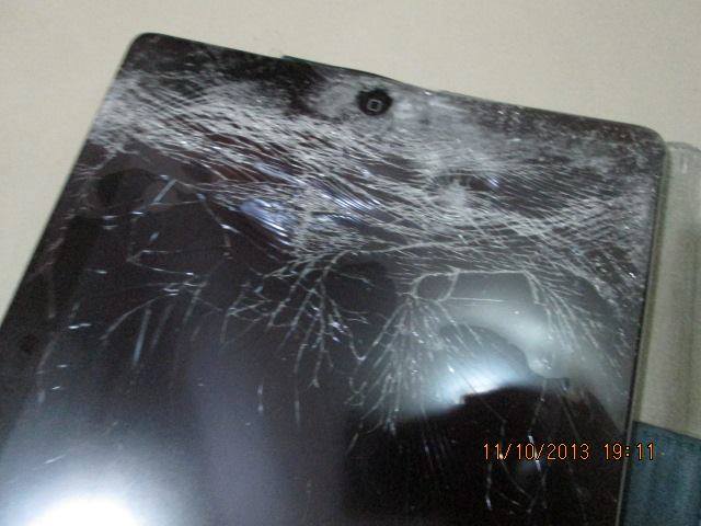 แม่ก็รอที่บ้านได้รับเย็นๆ เปิดดู เละเทะ แตกแบบระยับเลยคะ ใช้งานไม่ได้ แถมอลูมิเนียมก็งอด้วย นี่ขนาดใส่เคสแบบแข็งๆไปแล้วนะ