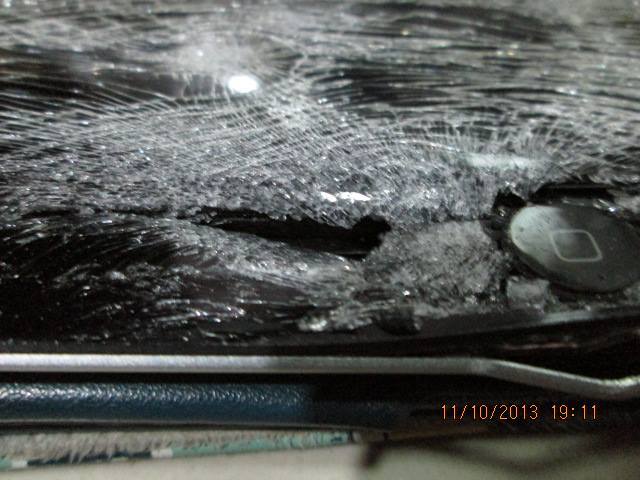 จอแตกเป็นรูตามภาพเลย เราเห็นแม่ส่งรูปมาให้ดูตกใจเลยคะ ไม่คิดว่าจะหนักขนาดนี้ตอนแรกว่าไม่เป็นไร เปลี่ยนจอเอาช่างมันเถอะนิดๆหน่อยๆ