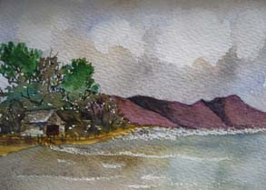 ภาพสีน้ำโดย ณ วินทร์ ชอบวาดภาพสีน้ำประกอบกลอนค่ะ ณ วัตร