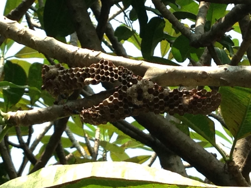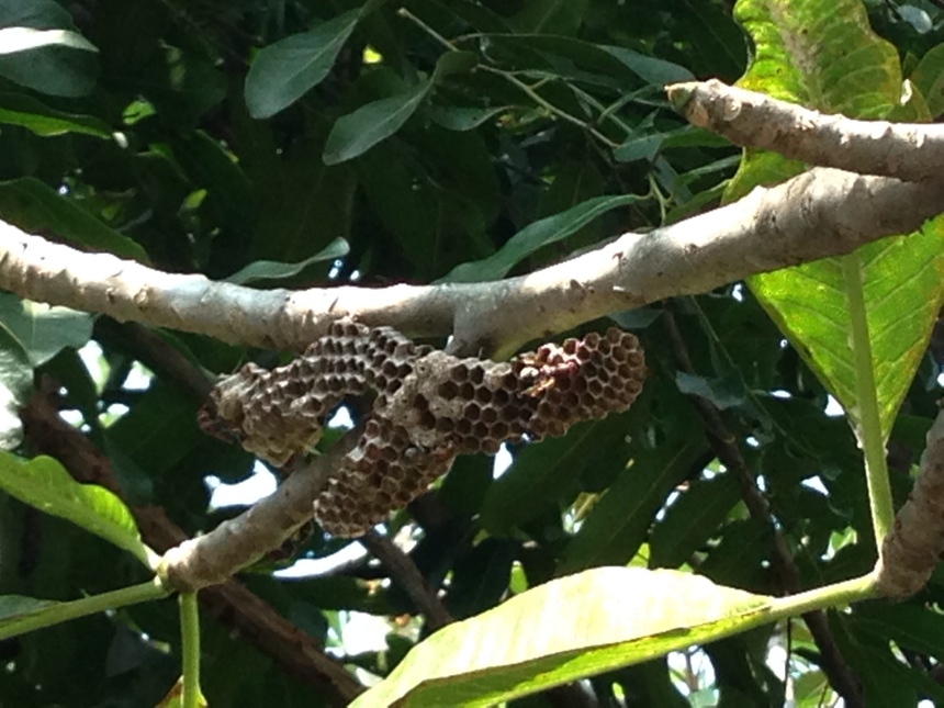 ผม : นี้แม่เห็นรังต่ออยู่หน้าบ้านนะ