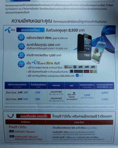 สอบถามโปร Best Deal 649 บาท 3G = 5GB ส่วนลดเดือนละ 100 บาท จาก DTAC