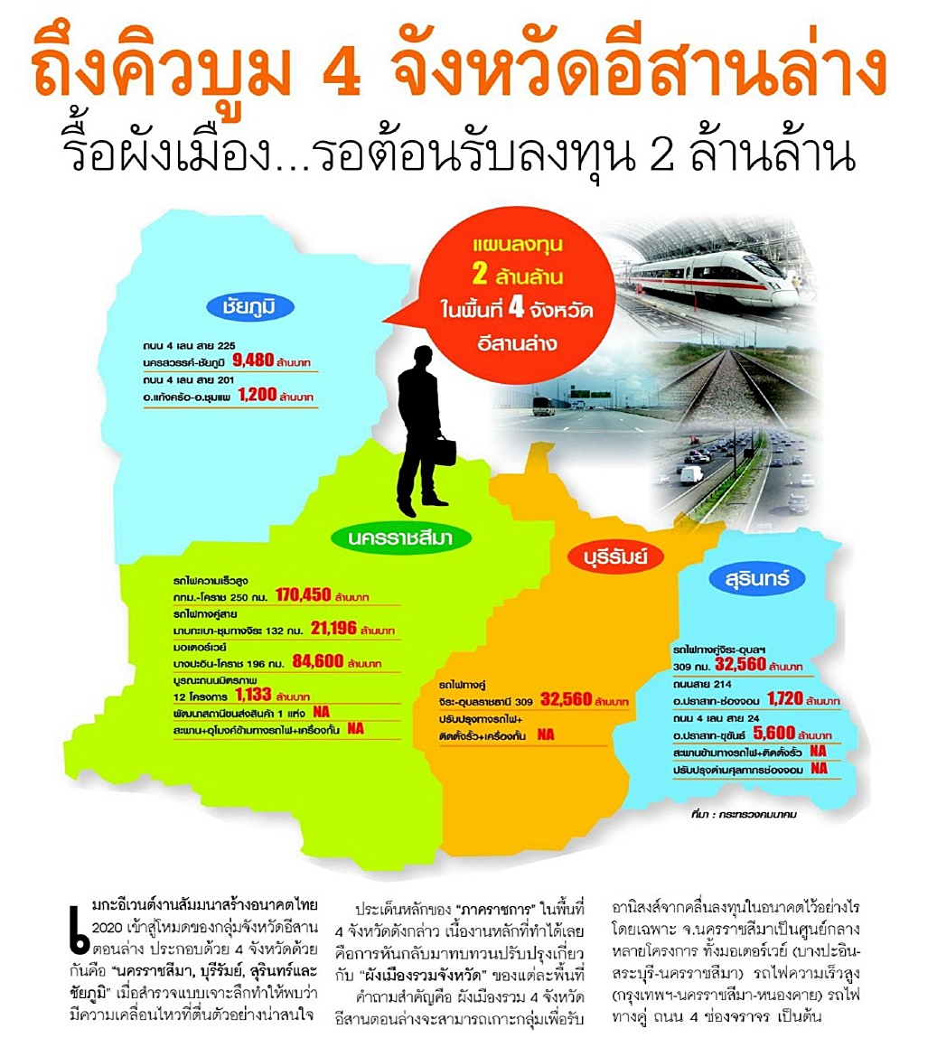 ++ ถึงคิวบูม 4 จังหวัดอีสานล่าง รื้อผังเมือง...รอต้อนรับลงทุน 2 ล้านล้าน ++