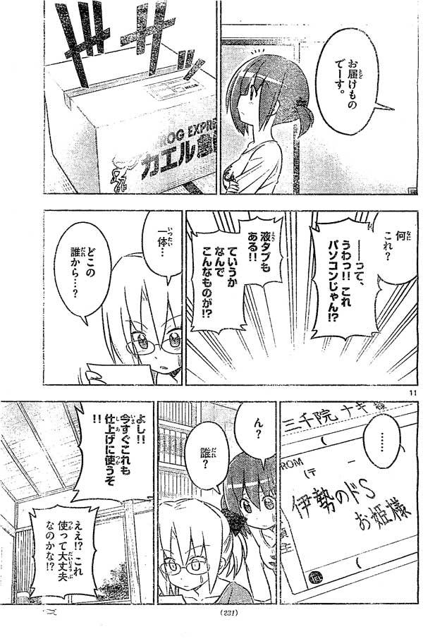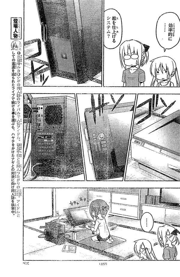 ว่าแล้วอายุมุก็ขนเอาทั้ง คอมพิวเตอร์แบบตั้งโต๊ะ(ท่าทางสเปคจะแรง) เครื่องแสกน หน้าจอแบบ Tablet Drawing (ไม่ขอบอกว่ายี้ห้ออะไรล่ะกัน) แล้วทำการติดตั้งเซ็ตเครื่องให้เงียบๆ ทั้งนางิกับจิฮารุถึงกับงงจนจิฮารุถามเลยว่าอายุมุไปเอาของพวกนี้มาจากไหน อายุมุบอกเธอยืมมาจากใครบางคนที่ไม่ได้ใช้ของพวกนี้ แต่บอกแค่นี้นางิกับจิฮารุก็รู้ได้กันเองเลยว่าต้องมาจากอาจารย์อาชิบาชิแน่ๆ