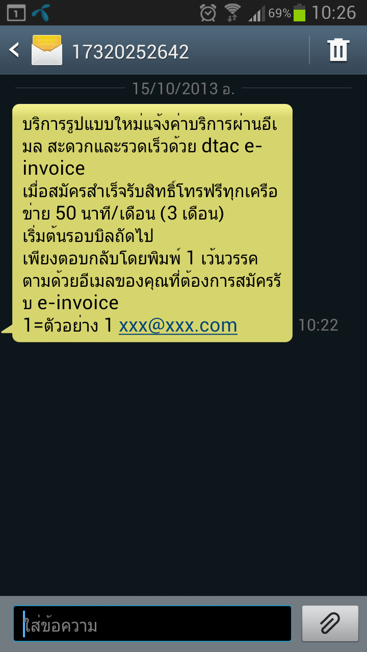 cc dtac ช่วยดู sms ชวนสมัคร e-invoice นี่ว่ามาจาก dtac รึเปล่า