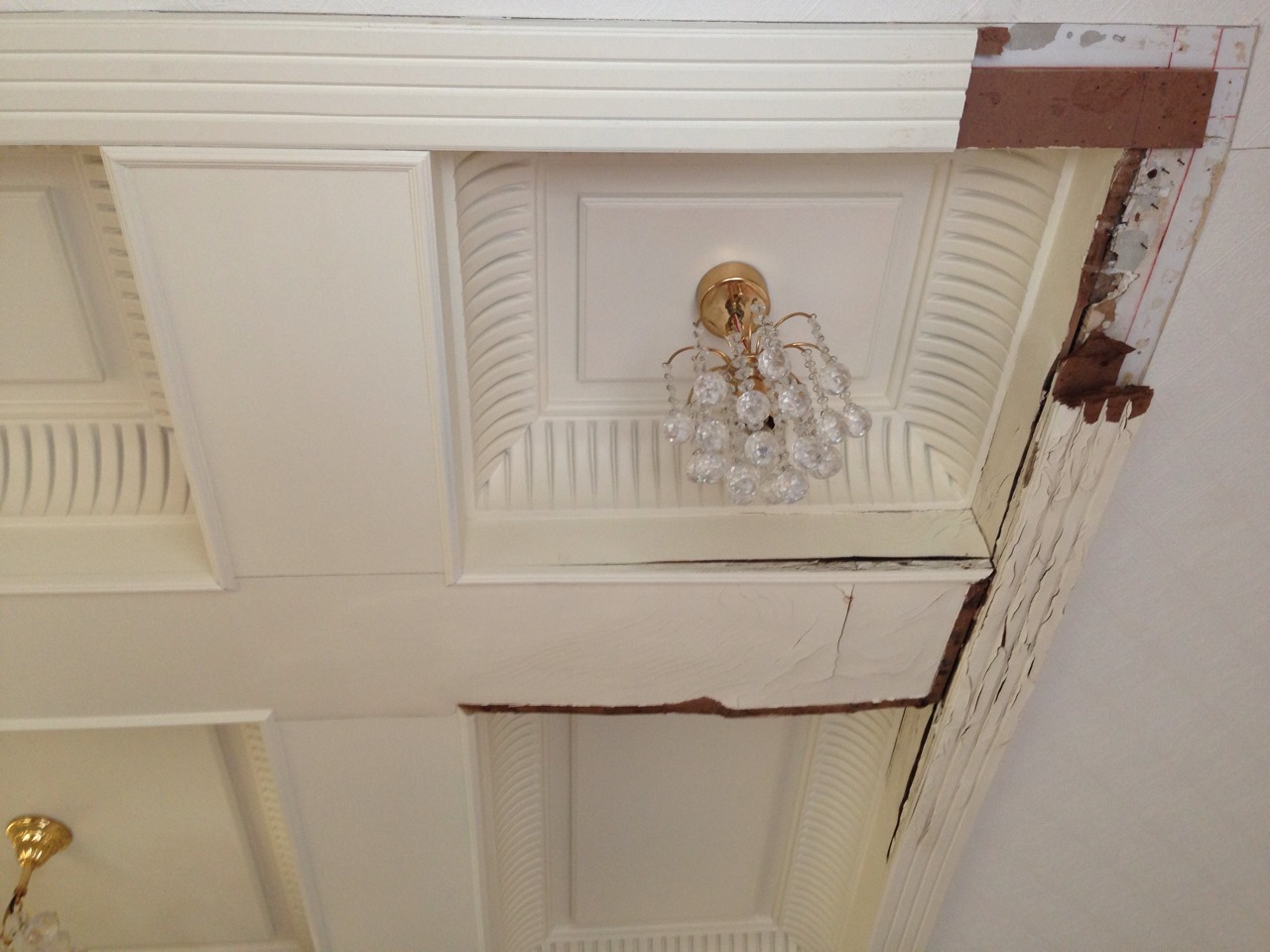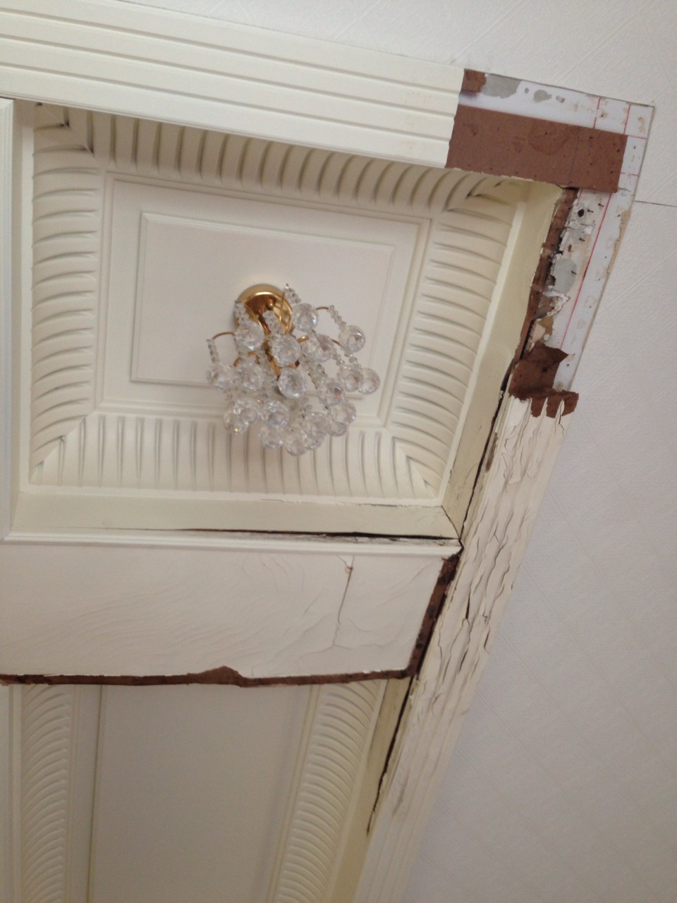 น้ำบนหลังคามันรั่ว ซึมเข้ามา ทำให้ตัวที่บิ้วอินบนเพดานบวมและหลุดออก
