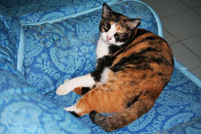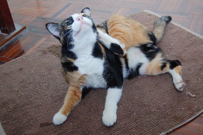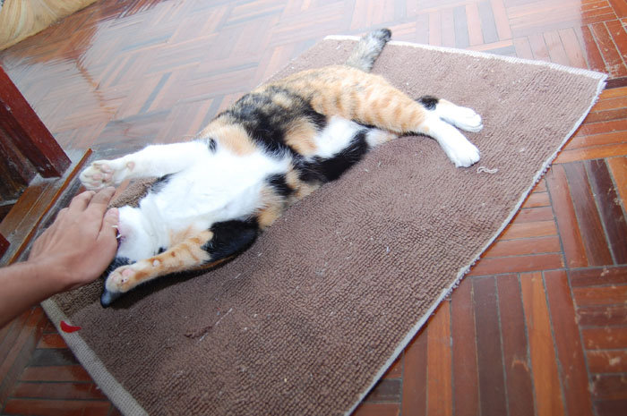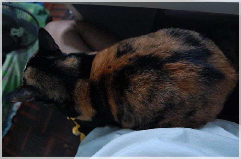 คะน้า ตัวนี้อายุน่าจะประมาณ 15 ขวบได้แล้วนะ อยู่ด้วยกันมานานมาก เป็นแมวบ้านขนานแท้ คือชอบอยู่แต่ในบ้าน กลัวโลกภายนอก กลัวคนแปลกหน้า ไม่รู้ว่าเคยไปโดนใครขืนใจมาหรือเปล่า เลยไม่ค่อยออกไปเที่ยวไหนเลย อย่างมากก็หน้าบ้าน ออกมากลิ้ง ๆ เกลือก ๆ พื้นปูนซักพัก แล้วก็วิ่งเข้าบ้าน มีหน้าที่ กิน และก็นอนเท่านั้นสำหรับอีคะน้าตัวนี้