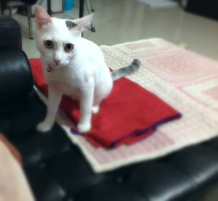 น้องแมวเป็นลูกแมวถูกทิ้งค่ะ โดนรถกระบะมาปล่อยทิ้งไว้ที่สวนหน้าบ้านแล้วน้องเดินตามแม่เรามา แม่สงสารก็เลยรับน้องมาดูแลจึงไม่ทราบประวัติการทำวัคซีนมาก่อน จากการพาไปพบหมอเมื่อเดือนก่อนทราบว่าน้องอายุประมา