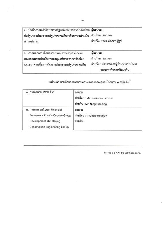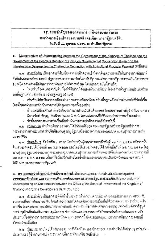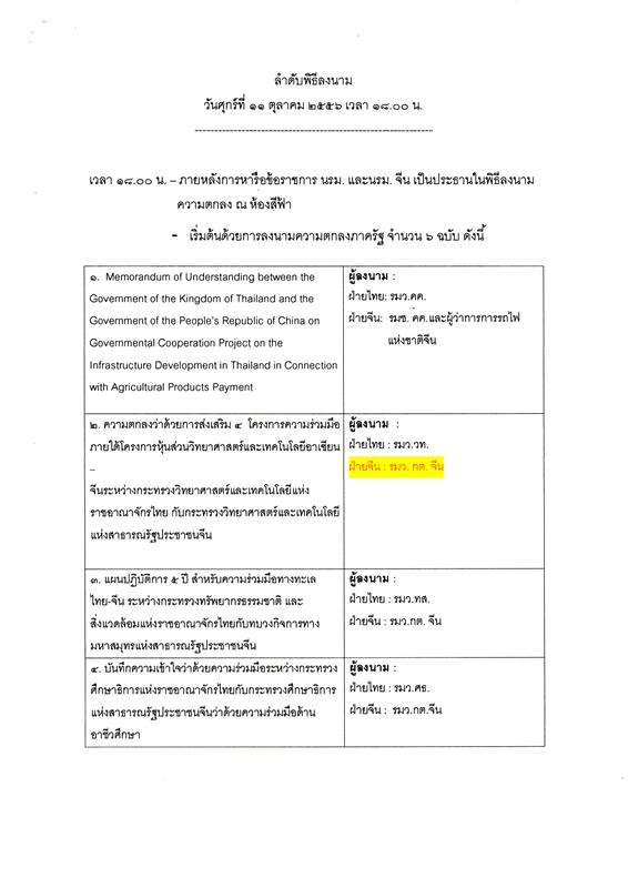 ข้อตกลงไทย-จีน 6 ฉบับ ที่ลงนามในระหว่างนายกหลี่ เค่อเฉียง เยือนไทย