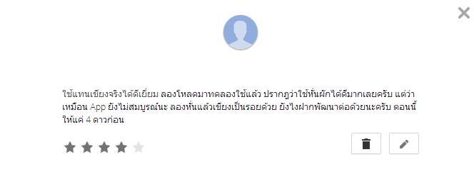 [Spoil] คลิกเพื่อดูข้อความที่ซ่อนไว้5555555555555555 เปิดมาเจอตอนดึก ฮามาก คนทำแอพนี่ต้องอารมณ์ดีมากแน่ๆ เลย ถ้าผ่านมาเห็นกระทู้นี้ผมขอบอกว่ารีวิวจากในภาพเป็นรีวิวของผมเองนะครับ 555 (ผมไม่ได้เอาไปใช้จริงนะ ^^!)