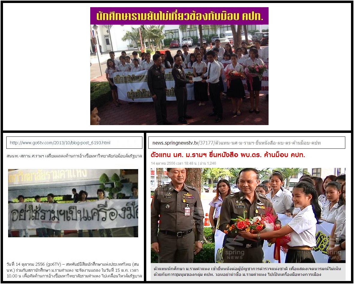 เด็กรามที่เป็นเด็กเรียนก็มี ซึ่งเป็นส่วนมาก กลุ่มโจรกลุ่มเล็กๆ ในคราบนักศึกษาก็มี ใครๆ ก็ลงทะเบียนหน่วยกิตเรียนได้ พวกนี้ต่างหากที่ชอบอ้างนักศึกษาส่วนใหญ่ เช่นเดียวกับม๊อบแมลงสาป ที่ชอบแอบอ้างเสียงส่ว