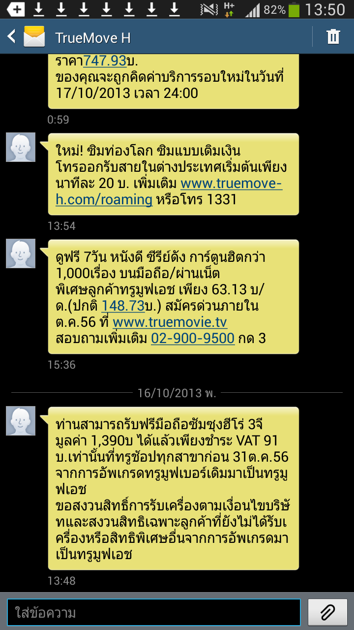 ได้รับข้อความจากทรูมูฟเอช ให้ไปรับมือถือซัมซุงฮีโร่ฟรี