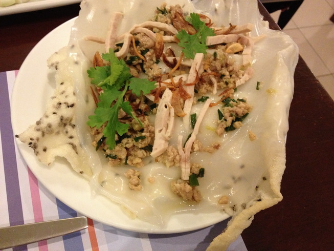 จานนี้น่าจะเป็นข้าวเกรียบปากหม้อรึเปล่า ไม่แน่ใจค่ะ แฟนเป็นคนสั่ง ธรรมดาค่ะ